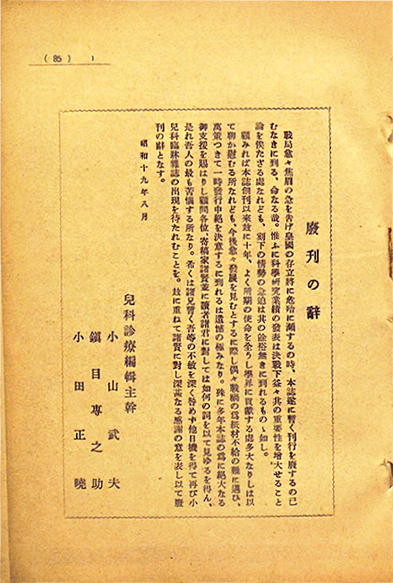 「雑誌は医界の公器であって私有さるべきものではありません。私は斯く信ずることによって、私情で発行を止めたり又事に当たって打ち壊すこともせず持ち続けて参りました」
