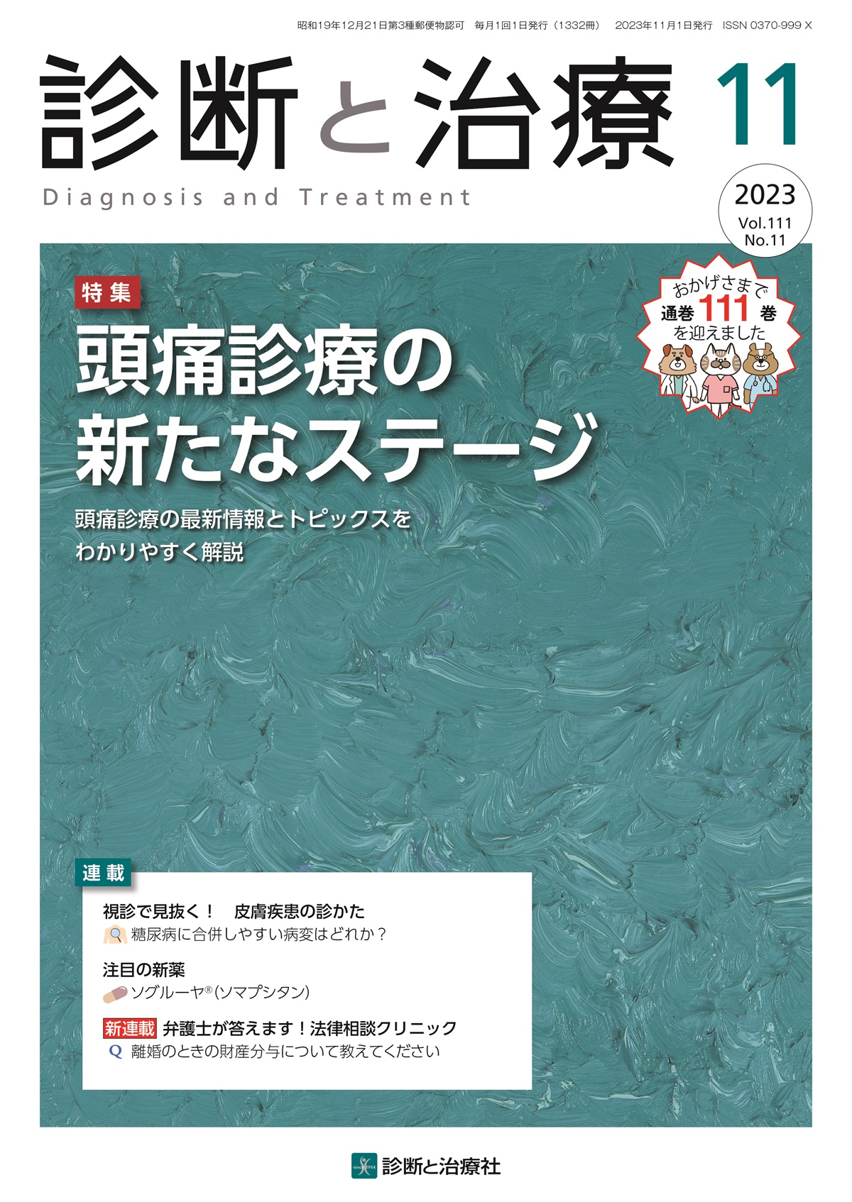 雑誌「診断と治療」2023年 Vol.111 No.11 頭痛診療の新たなステージ