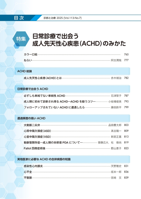 雑誌「診断と治療」2025年 Vol.113 No.7 日常診療で出会う成人先天性心疾患(ACHD)のみかた