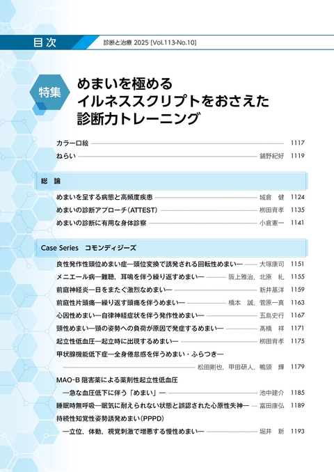 雑誌「診断と治療」2025年 Vol.113 No.10 めまいを極める イルネススクリプトをおさえた診断力トレーニング
