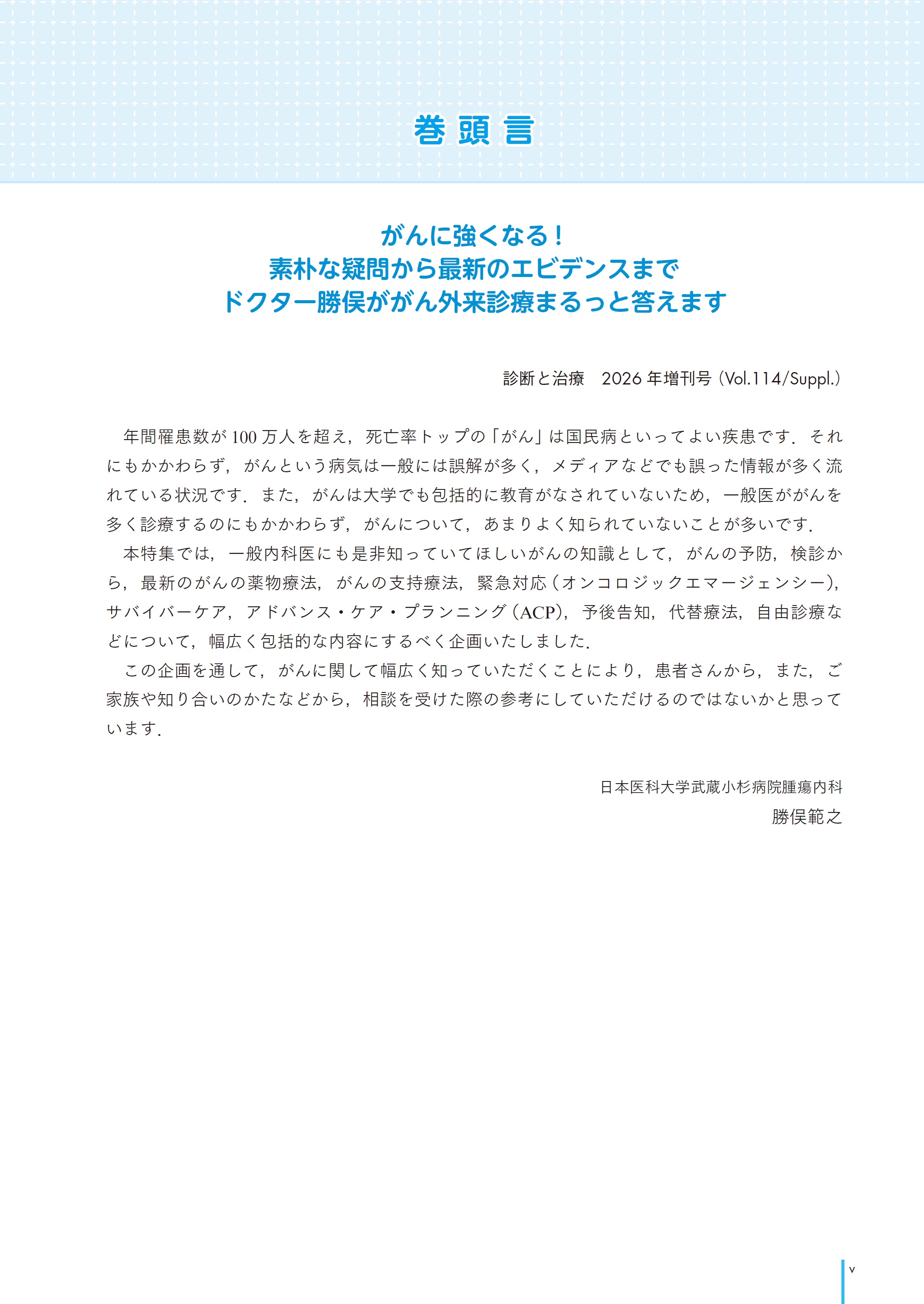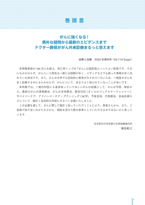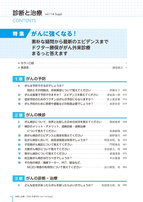 雑誌「診断と治療」2026年 Vol.114 増刊号 がんに強くなる!〜素朴な疑問から最新のエビデンスまで ドクター勝俣ががん外来診療まるっと答えます!〜