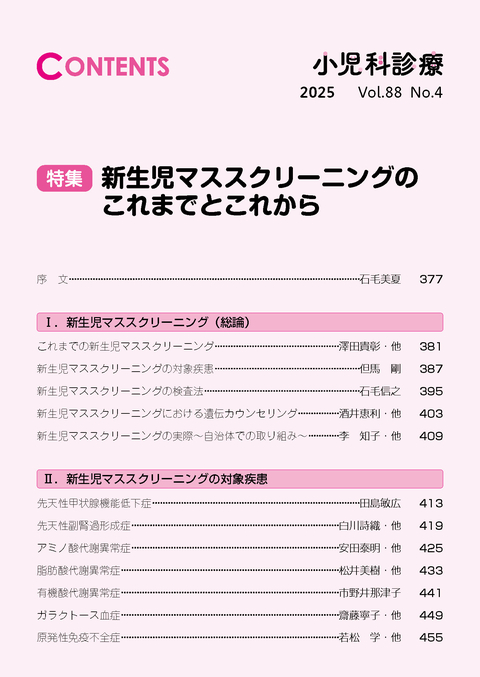 雑誌「小児科診療」2025年 Vol.88 No.4 新生児マススクリーニングのこれまでとこれから