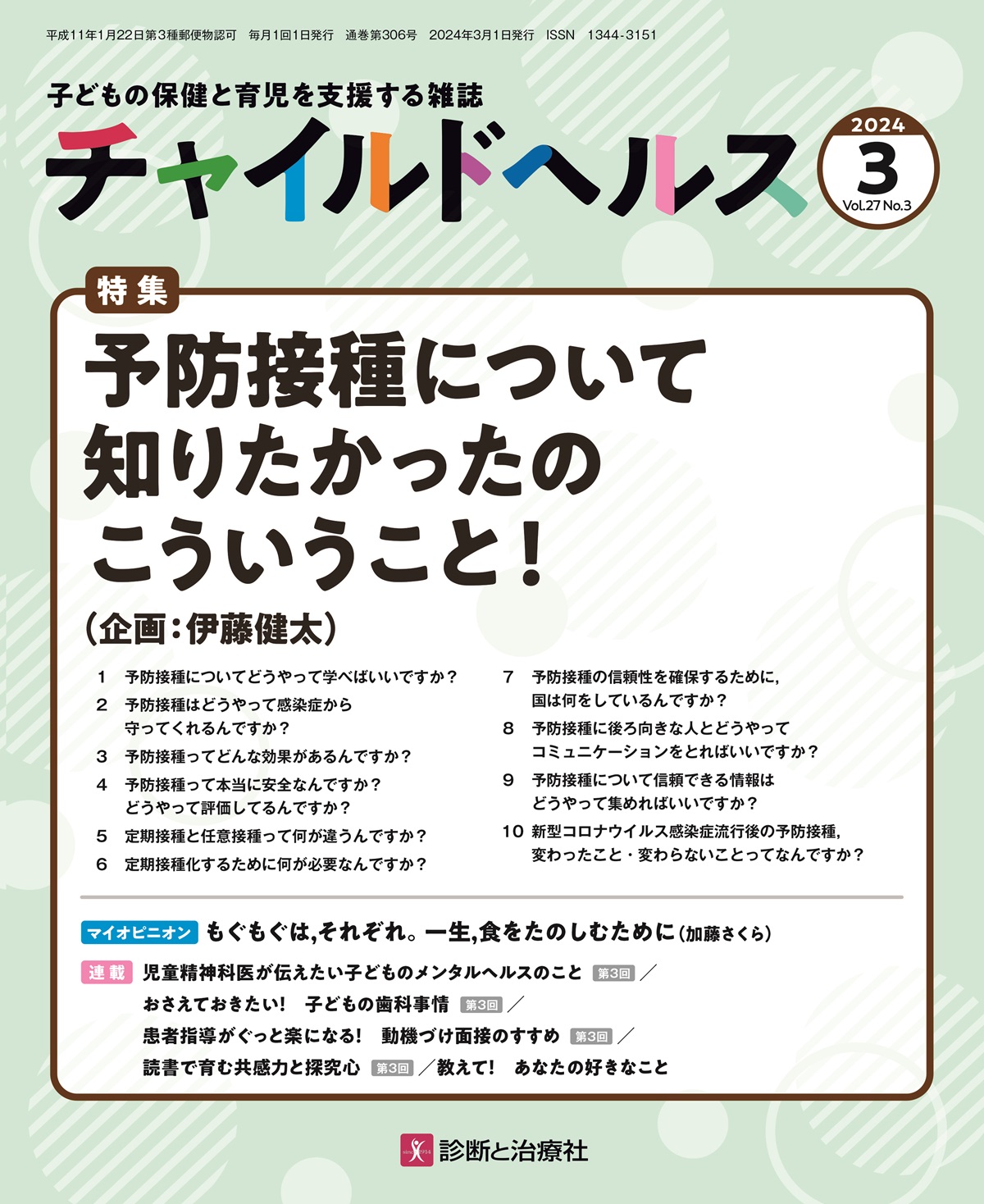 雑誌「チャイルドヘルス」2024年 Vol.27 No.3 予防接種について知りたかったのこういうこと!
