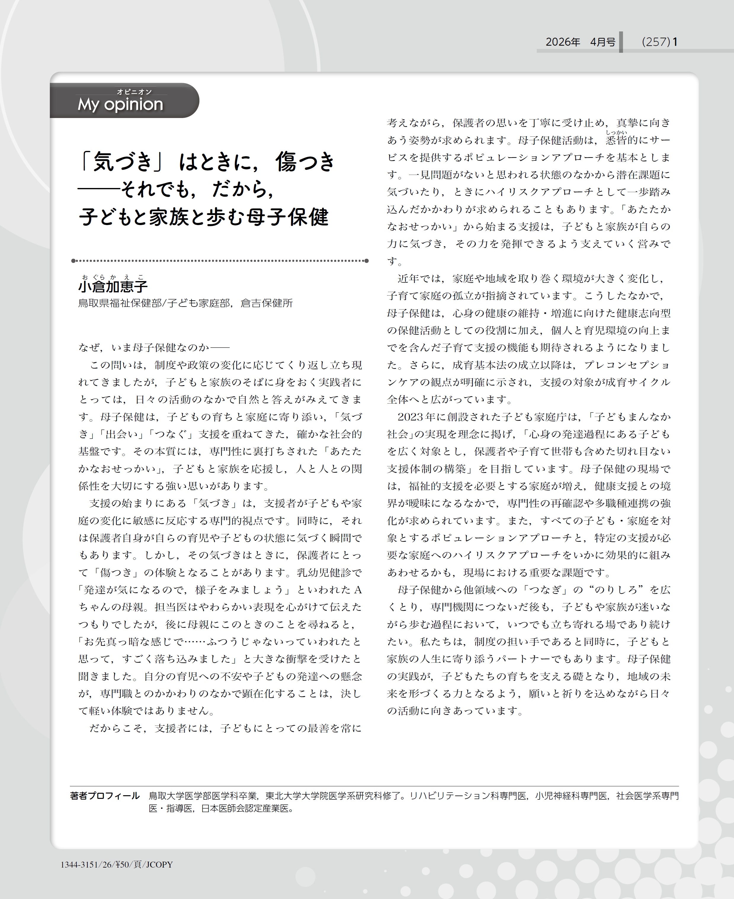 「気づき」はときに,傷つき―それでも,だから,子どもと家族と歩む母子保健……小倉加恵子