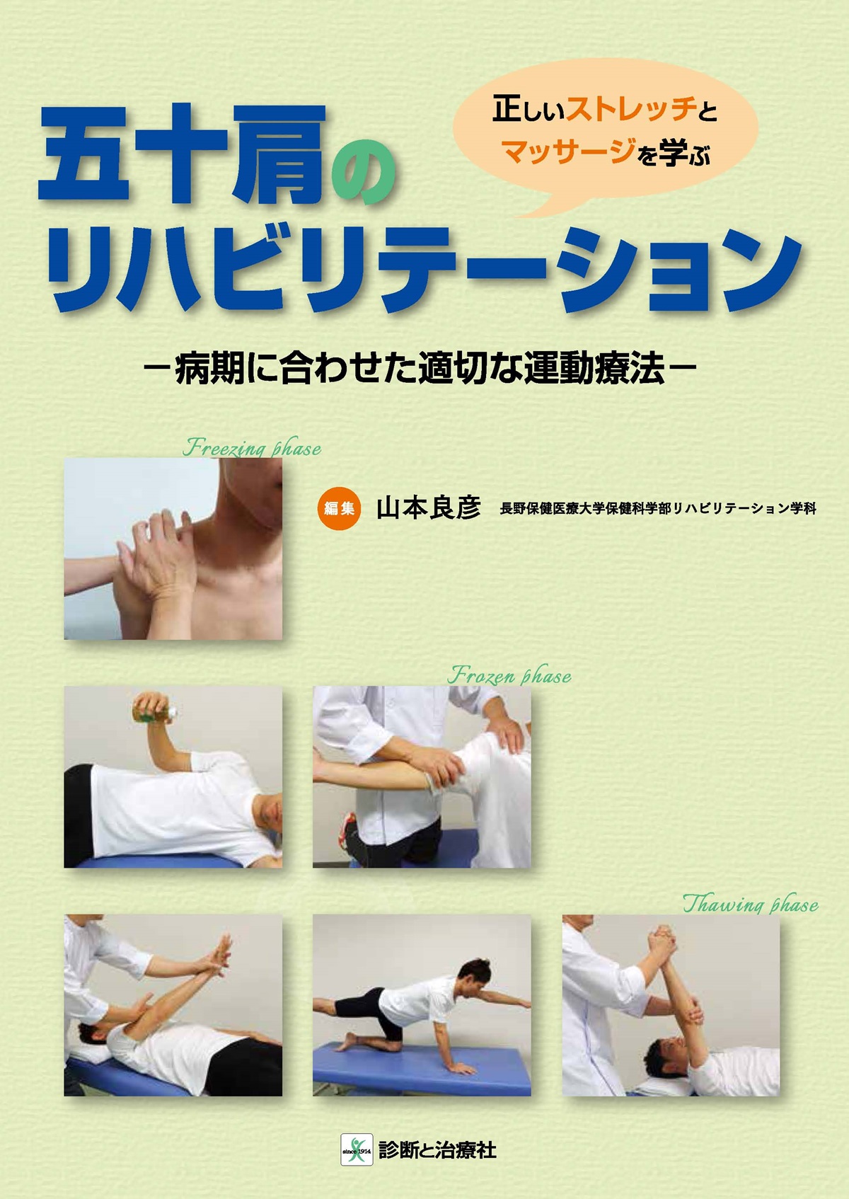 五十肩の経過をみていると,各時期の名称はさまざまですが,大きく分けて三つの病期があることがわかります.むやみに動かして痛みを悪化させないように,また過度な安静により肩関節可動域に運動制限を残すことがないように,それぞれの病期に応じた治療の考え方を記しました.五十肩の治療は「痛みに耐えて肩を動かせばよい」というものではありません.それぞれの病期でその症状が異なるため,治療のしかたも変わります.できるだけ早く治し,肩に機能障害を残さないために適切な時期に適切なエクササイズを行うことが重要です.