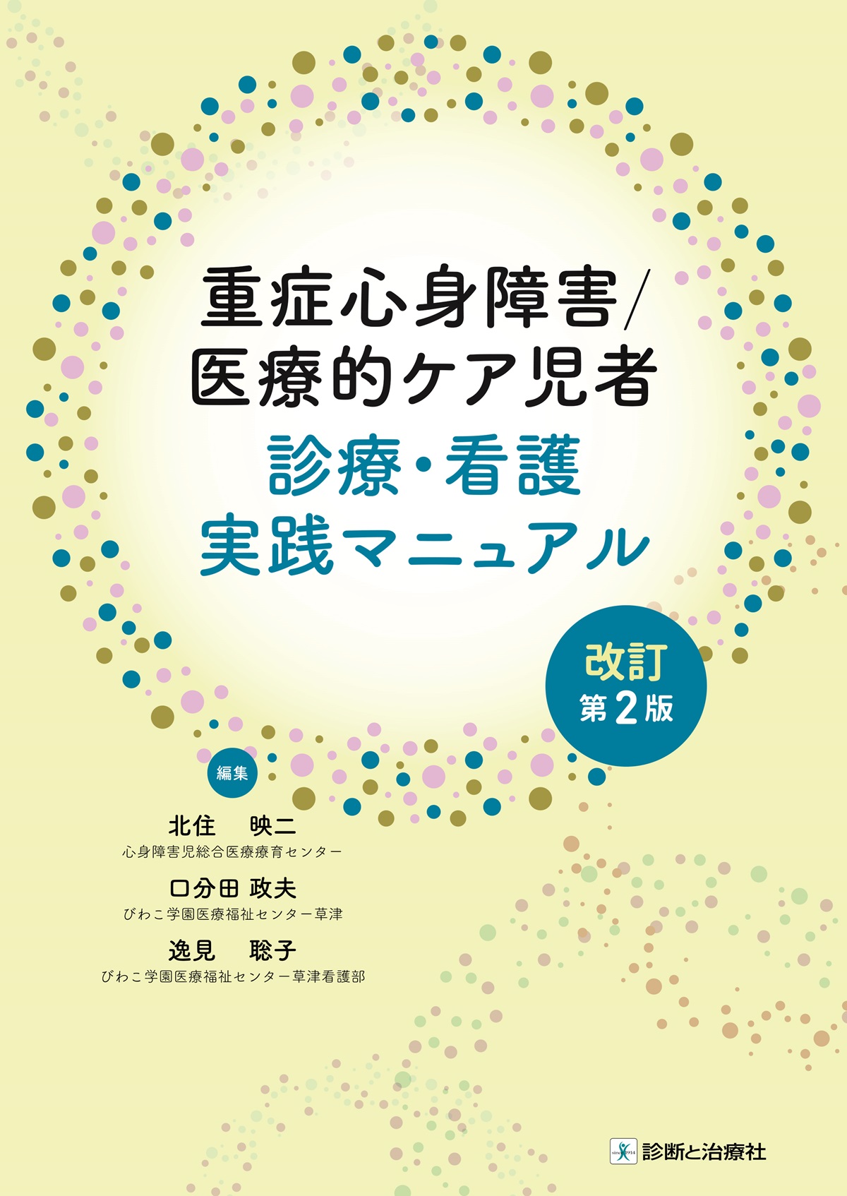 このようななかで,専門的な療育医療施設において重症児者の診療・看護にあたるスタッフの基本的かつ実践的な知識の習得と整理を目的とするとともに,一般病院,診療所,訪問診療・訪問看護等での,重症心身障害を専門としない医師・看護師による重症児者の診療と看護や,教育や地域生活の場での医療的支援と看護にも役立つことを願い,本書を編集しました.医師・看護師だけでなくリハビリテーションスタッフなど,重症児者にかかわるコメディカルスタッフにも参考にしていただけるよう,配慮しました.初版の『重症心身障害児・者 診療・看護ケア実践マニュアル』は,2015年1月に発行してから,多数の方々に活用いただいています.