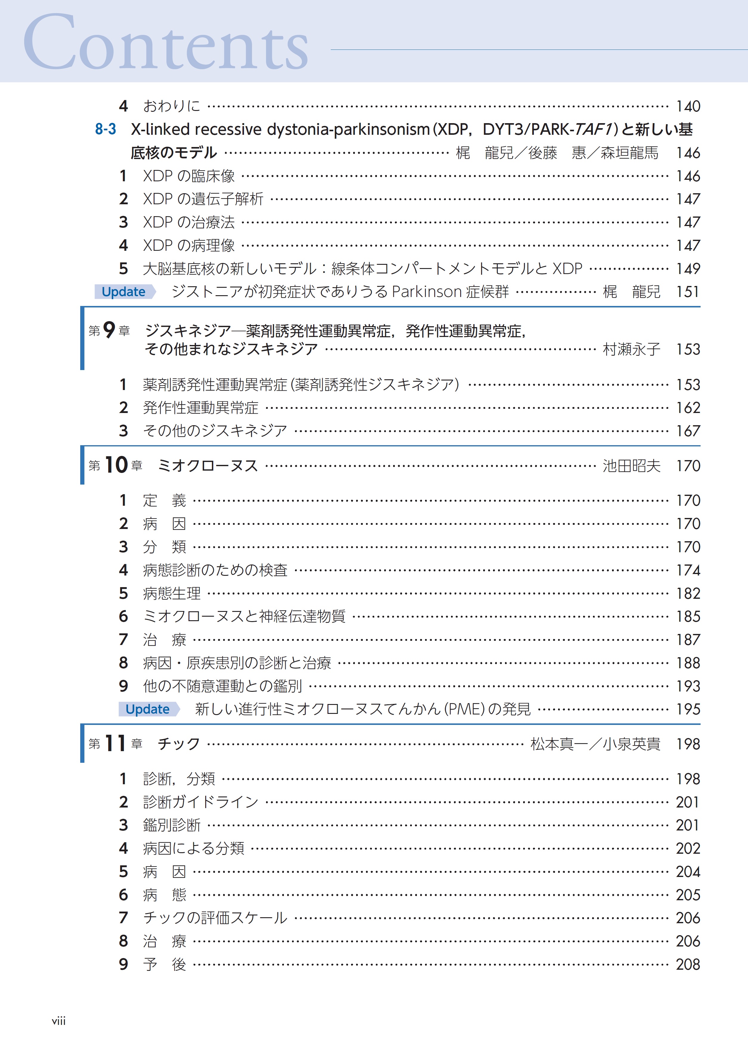 今版では,第2版出版時に比べて,多数の原因遺伝子が判明した遺伝性ジストニアや,以前は心因性と判断されていた遅発性ジスキネジアに対する薬物治療の発展など,10年足らずの間に,この分野での進歩を余すところなく取り入れることとした.