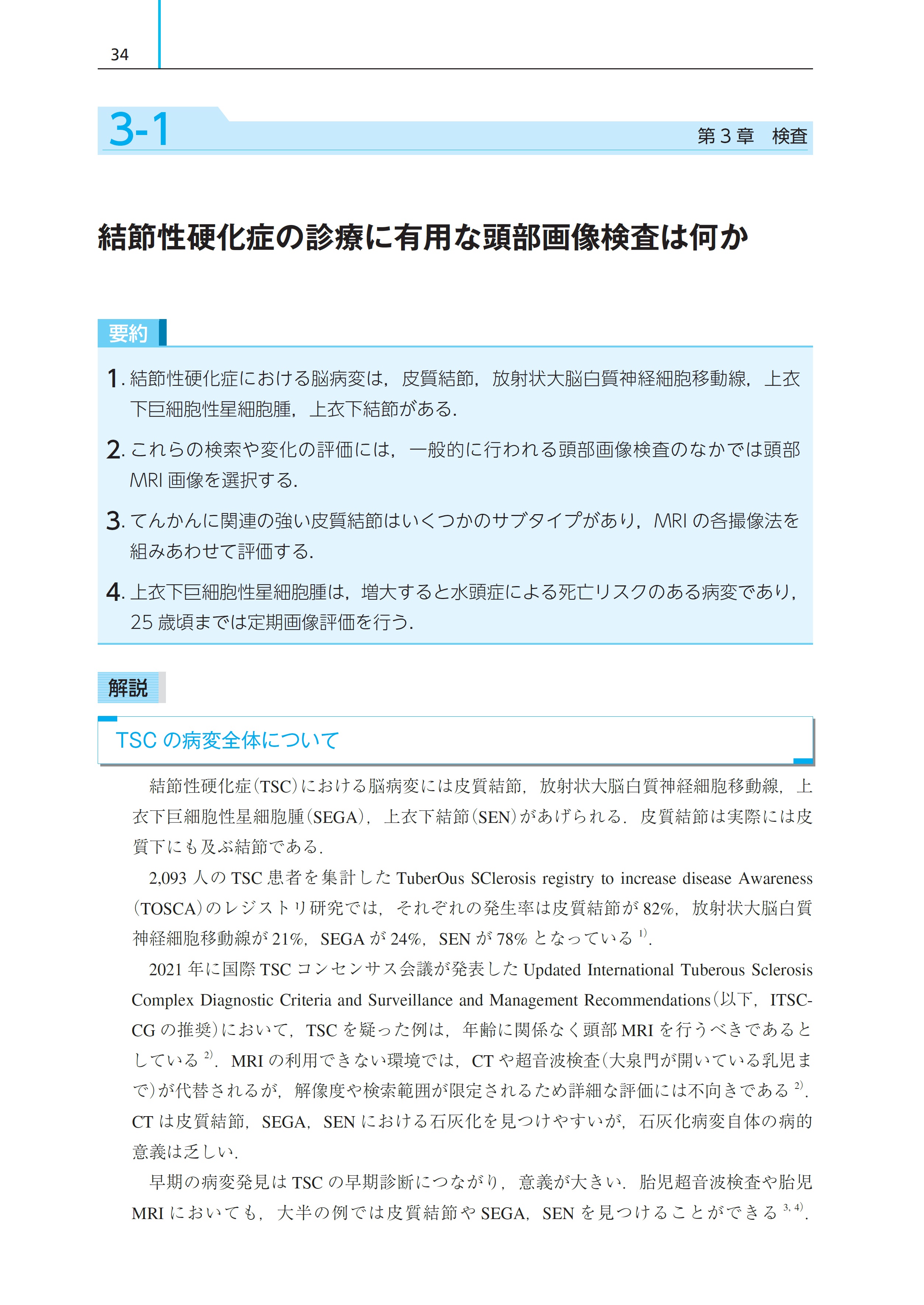 3-1 結節性硬化症の診療に有用な頭部画像検査は何か