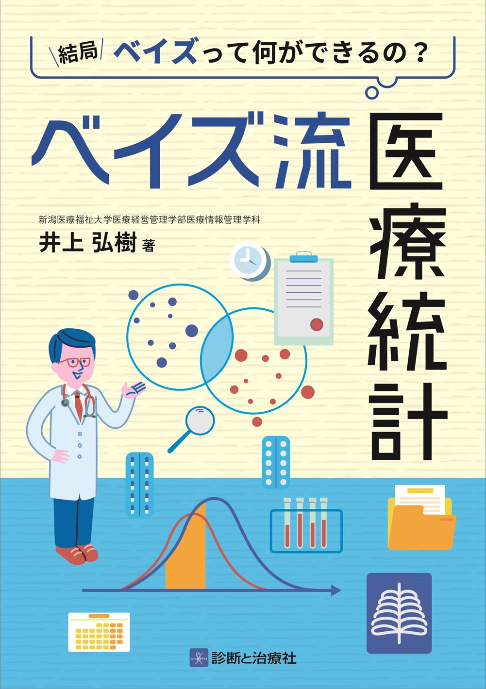 本書は,そのような皆さまのために,エッセンスを凝縮してお届けすることを目指しました.そして,先人たちの著された多くのベイズ統計の書物と少し異なるアプローチを行いました.具体的には物語風の文章を基本とし,なるべく観念的な表現を避けるように心がけました.また,診断と治療社の編集者と相談して,馴染みやすい体裁になるように努めました.しかし,それでも臨床系の記事とは異なり,「ここだけ押さえておけばOK!」というキーワードやポイントに乏しい,かつ,どうしても形而上的な表現になってしまっている箇所も,一部にあることをお許しください.