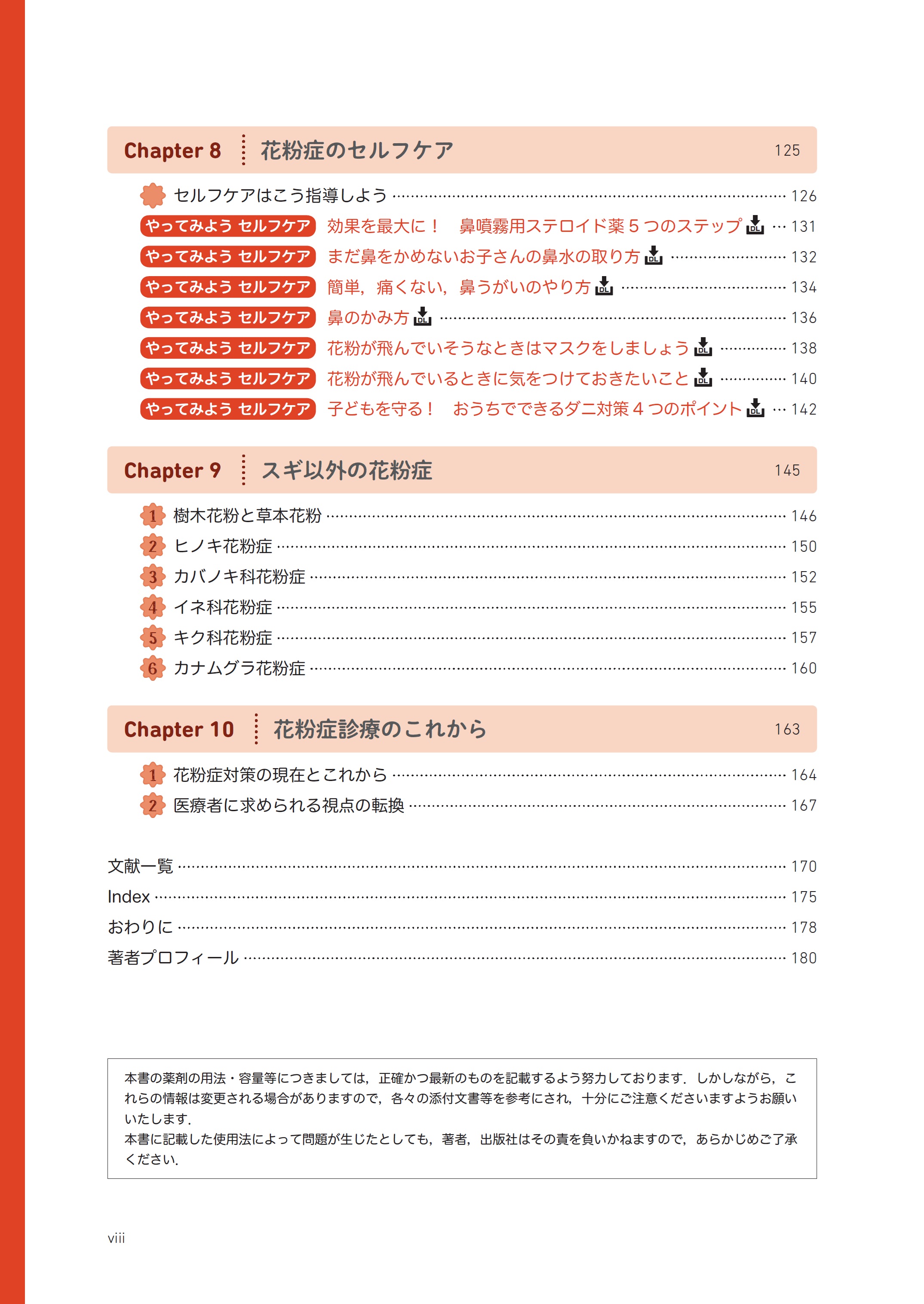本書の内容は,疫学,診断,疾患負荷,薬物療法,アレルゲン免疫療法(舌下・皮下),セルフケア,さらにはスギ以外の花粉症,そして社会全体での取り組みまで,多角的に整理しました.