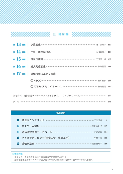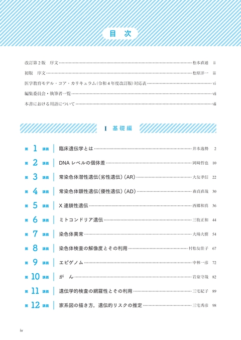 本書は,平成30年に発刊された『コアカリ準拠 臨床遺伝学テキストノート』の後継となる医療系学生向けの臨床遺伝学の教科書である.