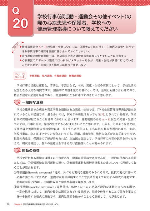 Q20 学校行事(部活動・運動会その他イベント)の際の心疾患児や保護者,学校への健康管理指導について教えてください