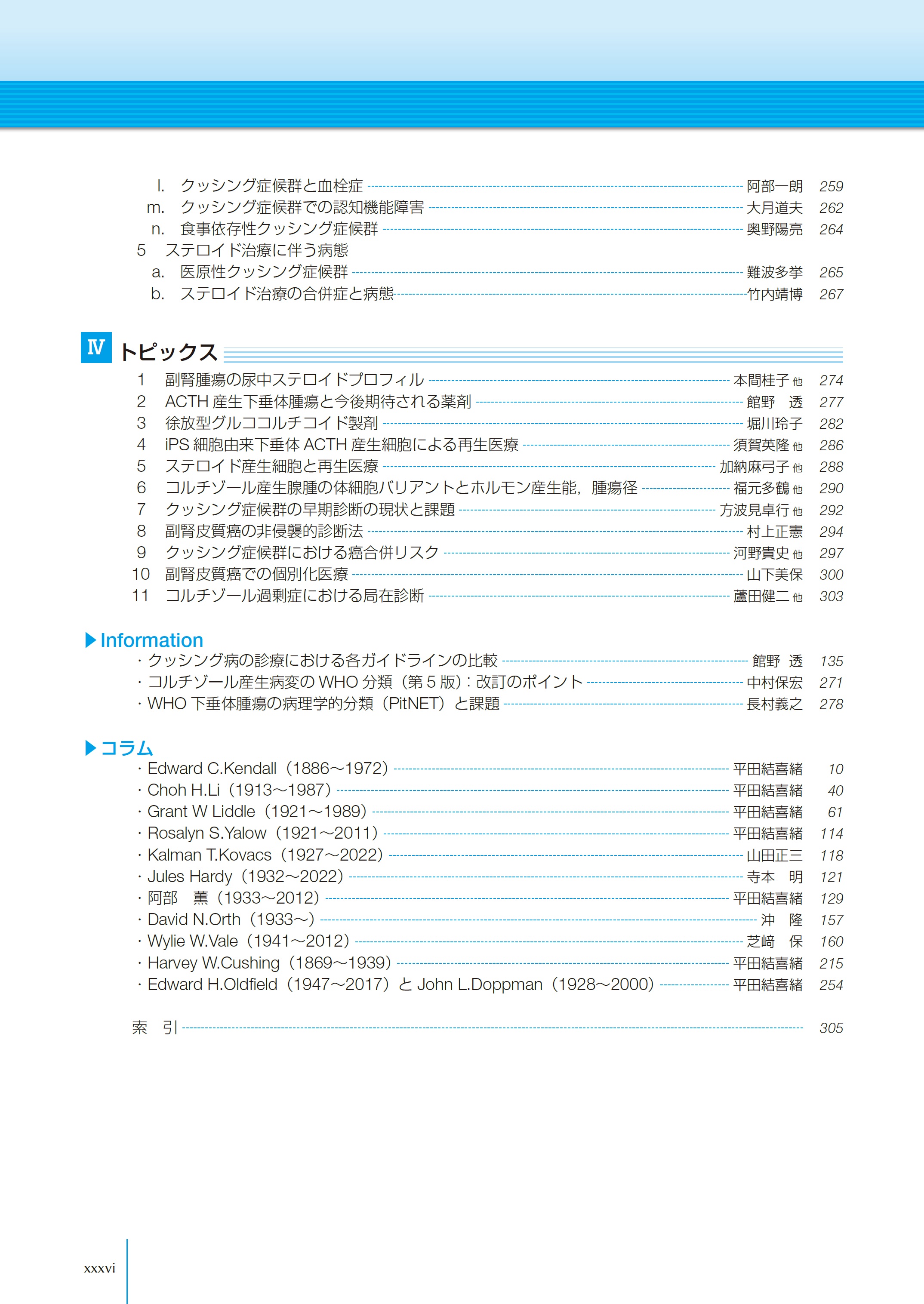 そこで改訂第3版では,髙橋 裕先生と共に第2版の内容を全面的に見直すとともに,この10年の間に改定,解明された事項,今後注目あるいは検討すべき事項を,臨床的重要性を加味して,取り上げた.本書の活用がコルチゾール過剰症の診療レベル向上に寄与すると信じている.改訂に際しご無理をお願いした執筆者の先生方に深く御礼を申し上げる次第である.