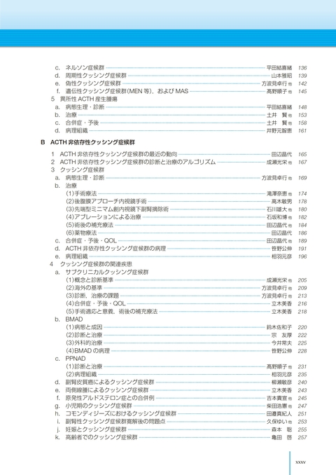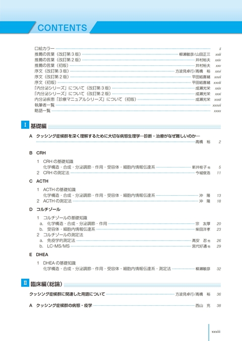 本書,『クッシング症候群診療マニュアル』は2009年に初版,2015年に改訂第2版が出版され,内分泌疾患の診療現場で大いに活用されてきた.しかし,その後も,欧州内分泌学会/ENSATによる副腎偶発腫の管理ガイドライン,Pituitary Societyやわが国におけるクッシング病のガイドライン,WHOによる副腎皮質疾患や下垂体腫瘍の病理分類等の改訂,わが国における副腎性顕性クッシング症候群の診断基準(2026年,予定)の発刊のほか,副腎皮質癌でのオンコパネル,mild autonomous cortisol secretionなど,大きな変更,進展が見られた.