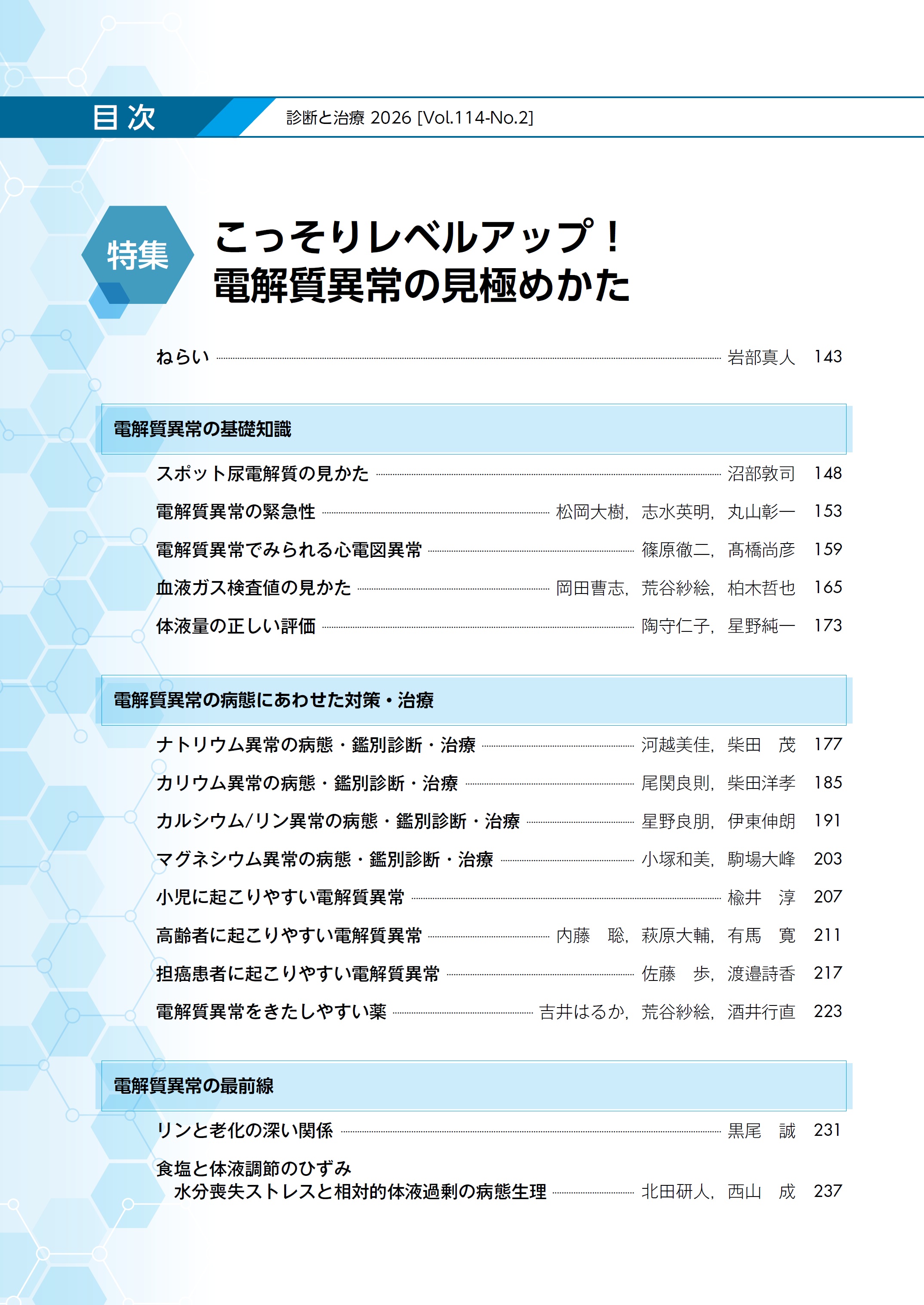 雑誌「診断と治療」2026年 Vol.114 No.2 こっそりレベルアップ! 電解質異常の見極めかた