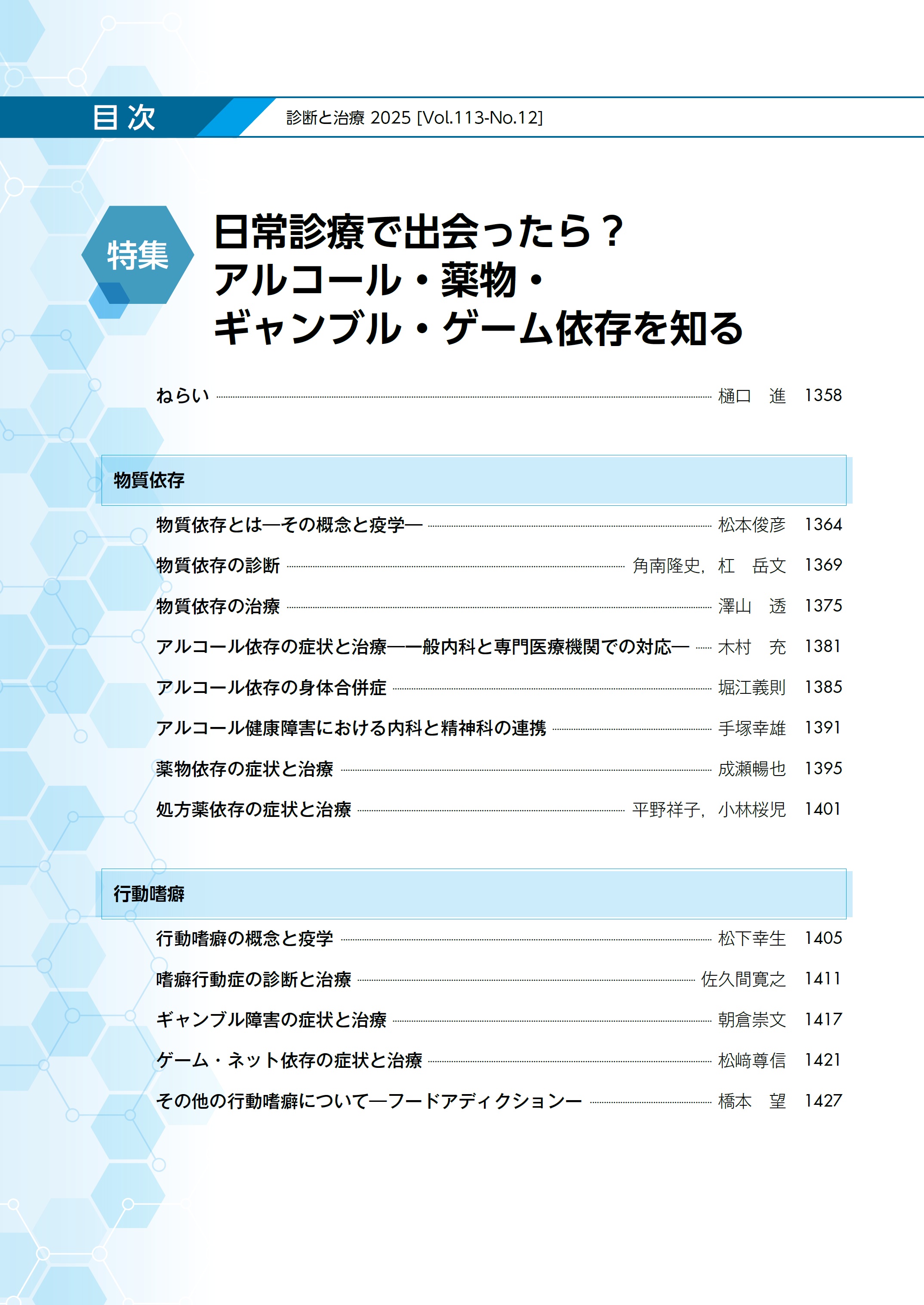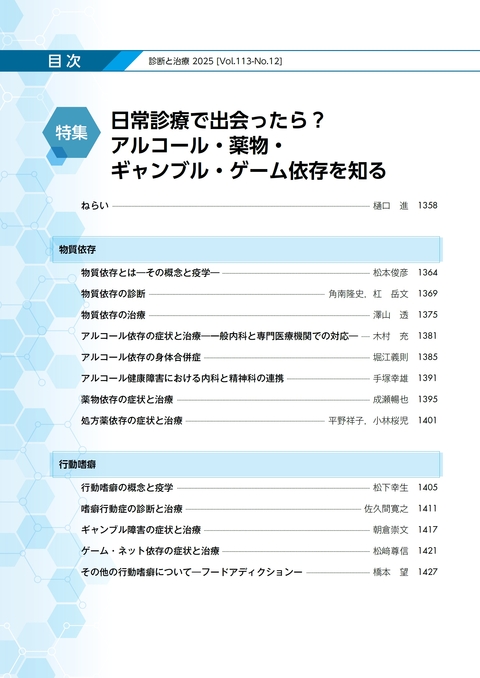 雑誌「診断と治療」2025年 Vol.113 No.12 日常診療で出会ったら? アルコール・薬物・ギャンブル・ゲーム依存を知る