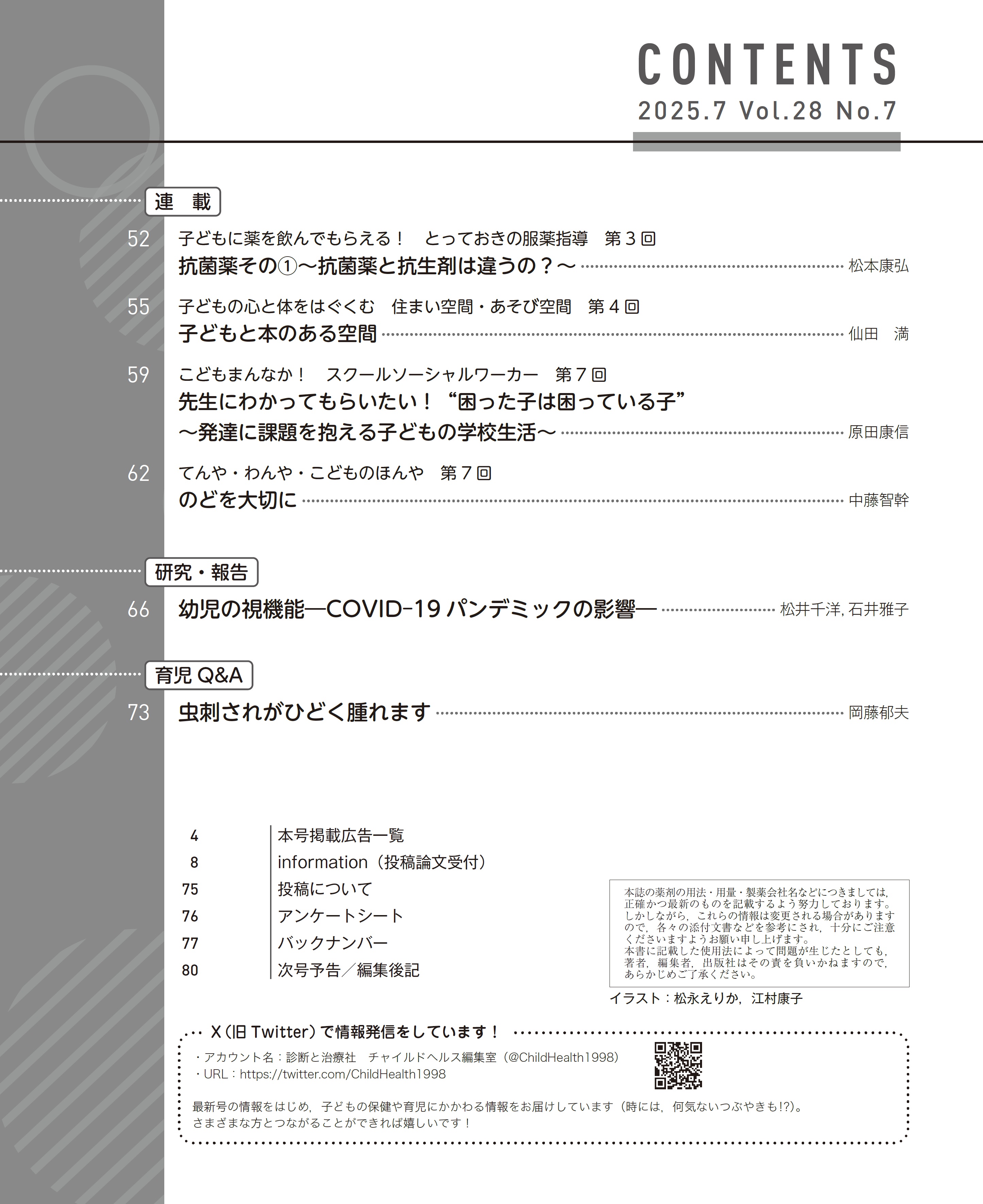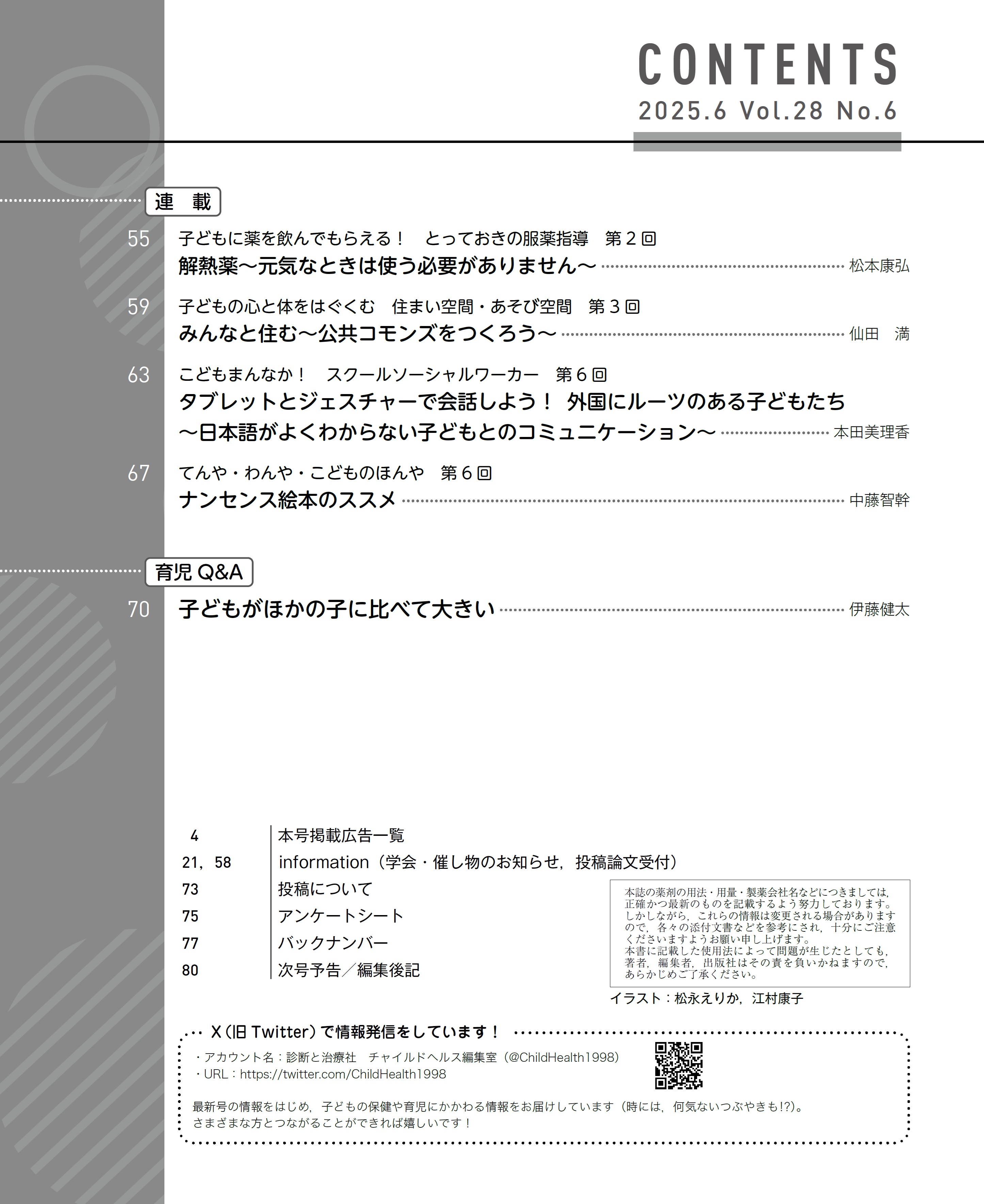 本特集では,日々の外来や健診,学校や保育所との連携の場面で「サクッと」使える資材を厳選し,その特徴や活用法を具体的に紹介します.難しい専門用語をさけ,図表やイラストを積極的に取り入れながら,読者が明日からすぐに患者指導に役立てられることを目指しました.さらに,各資材で「ここだけは押さえてほしい」という要点も示し,忙しいなかでも効率的に学べるよう工夫しています.