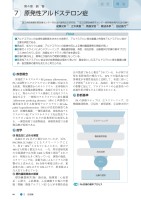 Ⅱ 各論編86●●●疾患概念 原発性アルドステロン症(primary aldosteronism,PA)は副腎からアルドステロンが過剰に分泌される結果,腎尿細管からのナトリウム・水再吸収の増加による循環血漿量増加,高血圧を呈するととともに,腎からのカリウム排泄による低カリウム血症を示す.一側性のアルドステロン産生腺腫(aldosterone producing adenoma;APA)と両側性の過形成を呈する特発性アルドステロン症(idio-pathic hyperaldosteronism;IHA)が代表的病型であるが,両側性腺腫,一側性過形成,家族性高アルドステロン症(グルココルチコイド反応性高アルドステロン症など)などの非典型的な病型もある.一側性病変では副腎摘出,両側性病変では薬物治療が原則である.疫学1高血圧に占める頻度 高血圧の1%以下と報告されていたが,近年,PAC/PRA比(ARR)によるスクリーニングにより,約3~10%1)とされていることから,最大で400万人程度と推定される.一方,厚労省研究班の全国調査では年間1,500人程度と報告2)されており,頻度は大きく異なっている.調査の施設,スクリーニング法,診断方法によるバイアスの影響が大と思われる.PA全体の頻度は高いが,重症度の高いAPAはその10%以下で,患者数は5万人以下と考えている.2標的臓器障害の頻度 標的臓器障害(脳:脳出血,脳梗塞;心血管系:心肥大,心筋梗塞,心房細動その他の不整脈;腎臓:微量アルブミン尿)などが本態性高血圧の数倍であると報告3)されている.わが国では厚生省研究班の報告でも,APAでの脳出血の合併頻度が本態性高血圧と比較して,有意に高いことが報告4)されている.高血圧,低カリウム血症の影響に加えて,アルドステロンの心血管系への直接作用が関与すると報告されている.診断基準 PAの診療ステップは,①スクリーニング,②機能確認検査,③局在・病型診断,④治療方針の❶ アルドステロンの自律性過剰産生をきたす疾患で,アルドステロン産生腺腫と特発性アルドステロン症が主要な病型である.❷ 高血圧,低カリウム血症,アルドステロンの直接作用による標的臓器障害の頻度が高い.❸ 診療ガイドラインによりスクリーニング,機能確認検査,病型・局在診断,治療選択が診療の基本プロセスと決められているが,詳細はガイドライン間で差を認める.❹ 診療の質の向上,標準化が国内外で喫緊の課題となっている.❺ 原発性アルドステロン症全体の疾患頻度は極めて高いが,重症型といえるアルドステロン産生腺腫は難病・指定難病の要件を充たすと考えられる.Point1図 PA診療の基本プロセススクリーニング機能確認検査局在診断AVS治療の選択1)国立病院機構京都医療センター内分泌代謝高血圧研究部,2)国立国際医療研究センター病院糖尿病内分泌代謝科 成瀬光栄1),立木美香1),馬越洋宜1),難波多挙1),田辺晶代2)原発性アルドステロン症7第4章 副 腎指 定難 治